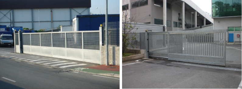 Automazione cancelli, di chiusura aree residenziali ed industriali, scorrevoli su ruote e o carrelli, a semplice e doppio carro, dimensioni eseguite sino a m. 15 per anta, altezze sino a m. 9.